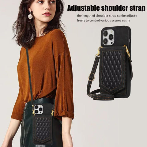 - Luxury Leather Case with adjustable Crossbody Strap.