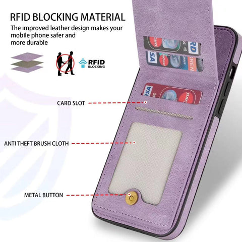 Case for iPhone RFID Blocking 16 15 Series Luxury Leather Flip Kickstand Card Slot ID Slot Cover